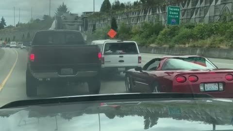 Это курьезное видео снял очевидец из машины по дороге в Сиэтл.