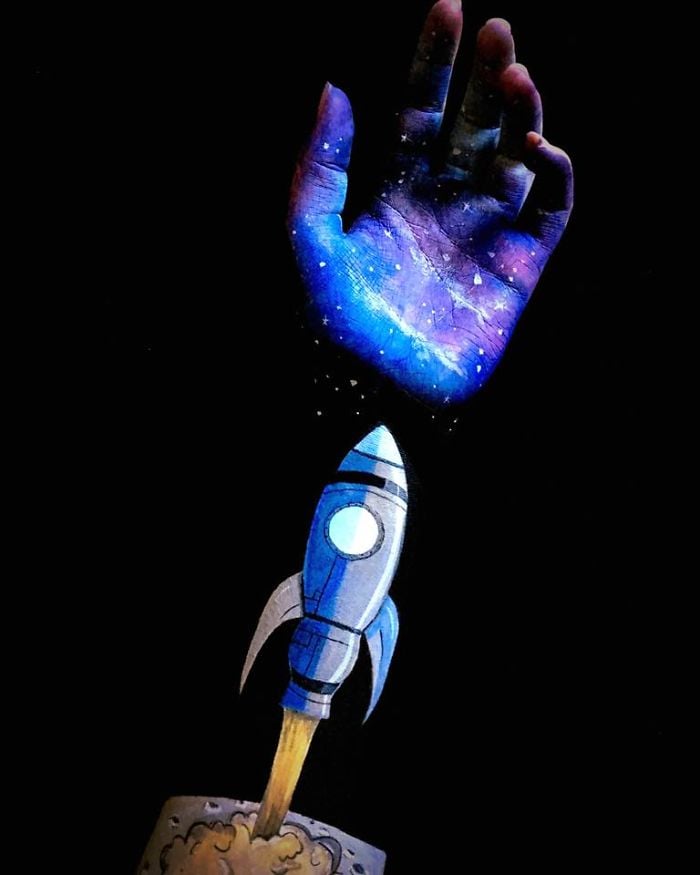 Такая оптическая иллюзия создается путем сочетания идеально выставленного освещения, черной краски, черного фона и правильного угла при фотосъемке.
