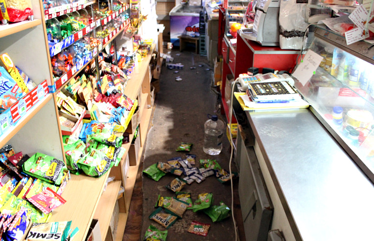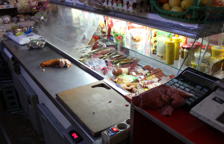 Двух крупных незваных гостей заметила утром хозяйка магазина. Она пыталась прогнать их веником из магазина. В результате один поцарапал ей руку и ногу.