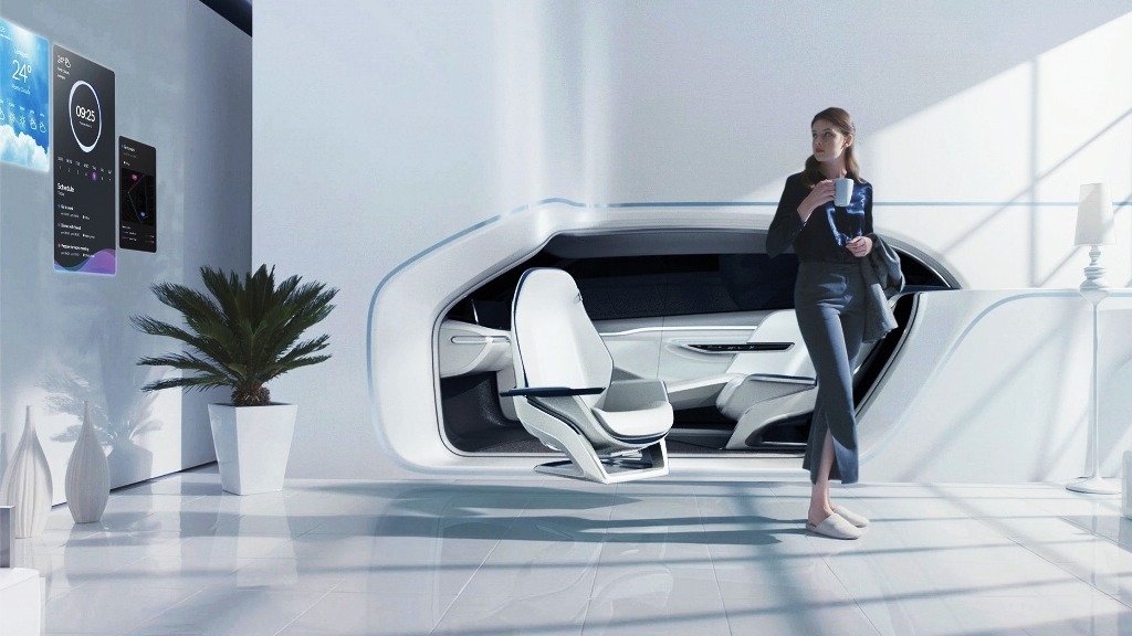 Кроме того, автомобиль служит кондиционером и мультимедийной системой для дома. Удобно расположившись в салоне, можно смотреть телевизор или слушать музыку. А если нужно будет куда-то поехать, достаточно задать беспилотнику пункт назначения с помощью смартфона и вы поедете туда, не вставая с дивана и не переставая смотреть любимую передачу.