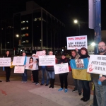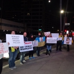 Похожую акцию протеста 23 января устроили и украинцы, проживающие в Лос-Анджелесе. Они также вышли на улицу с транспарантами и украинскими флагами, выкрикивая: «Слава нации», «Слава Украине», «Украина превыше всего». Фото и видео с митинга поделилась на своей странице в Facebook Vita Knudson.