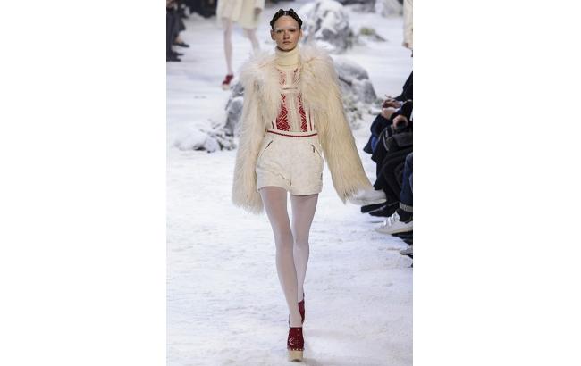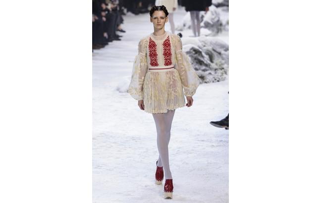 Также Moncler в новом сезоне предлагает облачиться в объемные белы шубы и, очень похожие на гуцульские жупаны, плиссированные юбки и короткие платья с этническим украинским узором. Кроме того, дизайнеры представили верхнюю одежду, украшенную камнями и цветами.