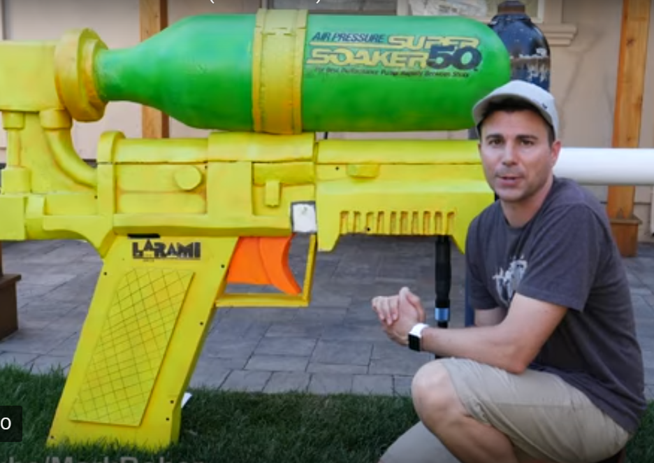 Видеоблогер Марк Робер, который увлекается создание необычных гаджетов и механизмов, разработал гигантскую версию водяного пистолета Super Soaker. Ранее Марк работал инженером в NASA, поэтому точность и эффективность его даже любительских разработок – поражает.