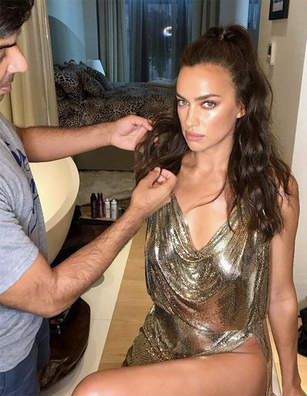 Супермодель Ирина Шейк появилась на церемонии Fashion Media Awards в Парк Хайят в Нью-Йорке в сексуальном золотом платье от Дома моды Versace. Пикантность наряду добавлял экстремальный разрез от бедра до пола, под которым трудно было рассмотреть наличие белья.