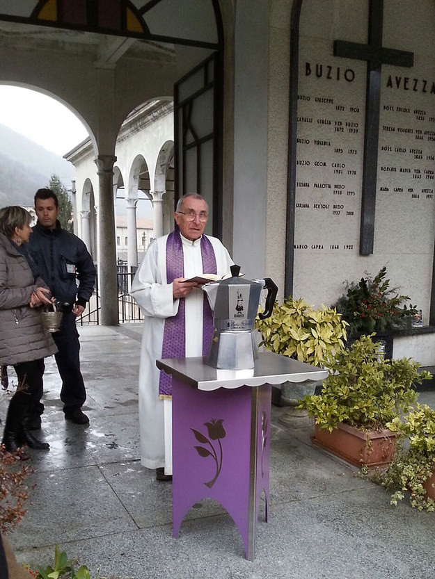 В церемонии приняли участие три сына Биалетти, которые принесли кофеварку в церковь деревни Казале Корте Черро, где прошла поминальная служба. Затем нестандартный сосуд поместили в гроб, пишут СМИ.
