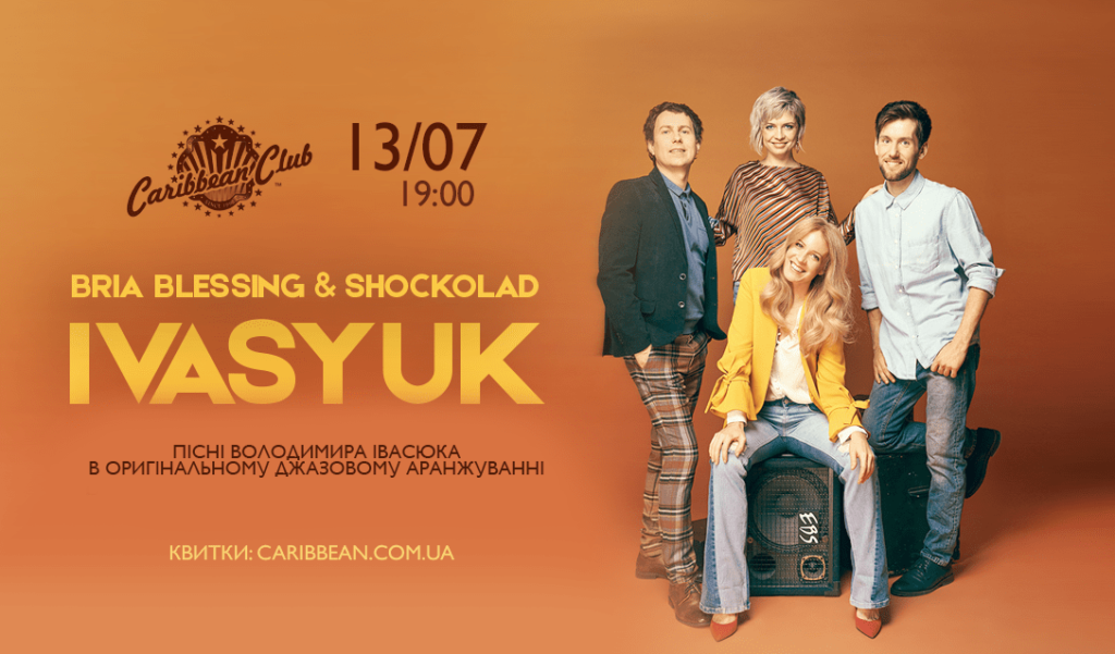 13 июля американская певица Брия Блессинг и украинский проект ShockolaD выступят с программой «IVASYUK» в Caribbean Club Concert Hall. Музыканты представят легендарные композиции Владимира Ивасюка «Червона Рута», «Я піду в далекі гори», «Водограй» и многие другие в оригинальных джазовых аранжировках.