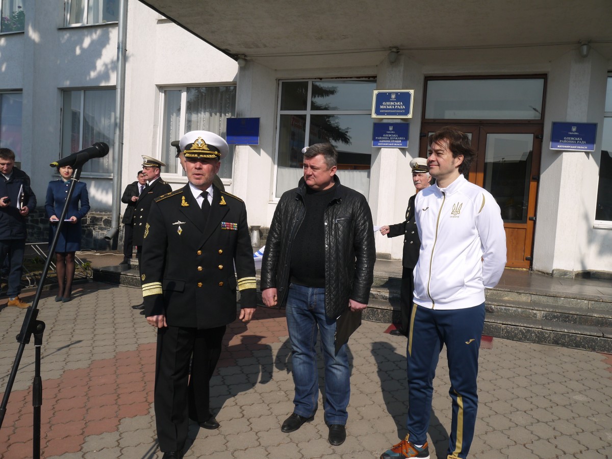 Участвовали в этом министр культуры Евгений Нищук и ФК «Маэстро», вице-адмирал Сергей Гайдук, мэр города Олег Омельчук, Александр Николайчук, директор народного природоведческого музея Олевска Анна Вжесинская, жители города, лицеисты Одесского Военно-морского лицея и Киевский военного лицея и ветераны национального флота из Ассоциации ветеранов ВМСУ, представители обществнных организаций Александр Чудновец и Вячеслав Рудник, представители Союза вольных козаков Украины, представитель Института археологии НАН Украины, кандидат исторических наук Андрей Петраускас.