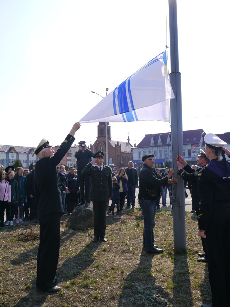 Первый этап начался на Соборной площади. Он включал в себя торжественный митинг, посвященный данному событию, поднятие флага ВМСУ, проведение акции в поддержку военнопленных украинских моряков и ветеранов флота — осужденных крымских «диверсантов», награждение медалями и памятными знаками. Завершился первый этап проведением молебна — памяти погибших житилей Олевска.