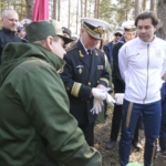 Второй этап — высадка корабельного леса под Олевском, именно там, где он рос тысячи лет назад. В посадке участвовали все — и ФК Маэстро во главе с министром культуры Евгением Нищуком, и представители ВМСУ во главе с вице-адмиралом Сергеем Гайдуком, и лицеисты. В стороне никто не остался. Благодаря совместной, дружной работе на участке 0,6 га за два часа были высажены сотни саженцев дуба и сосны. Таким образом, экспедиция положила начало древней традиции, и кто знает, может уже через полвека, или больше, именно с этих дубов и сосен в Украине начнут строить новые корабли.