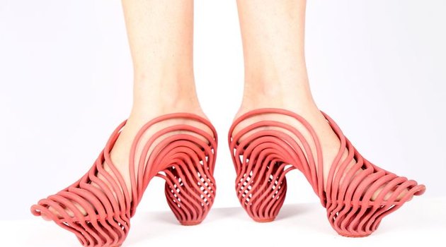 Дизайнер изготовила туфли на специальном 3D-принтере. В качестве материала девушка использовала нейлон, а подошву создала из светочувствительного фотополимерного материала, который предотвращает скольжение.