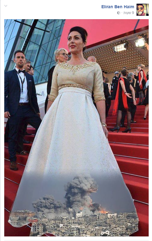 Министр культуры Израиля Мири Регев вышла на красную дорожку Каннского кинофестиваля в платье, на подоле которого были изображены принты с видами Иерусалима. При этом наряд включал и спорные территории страны.