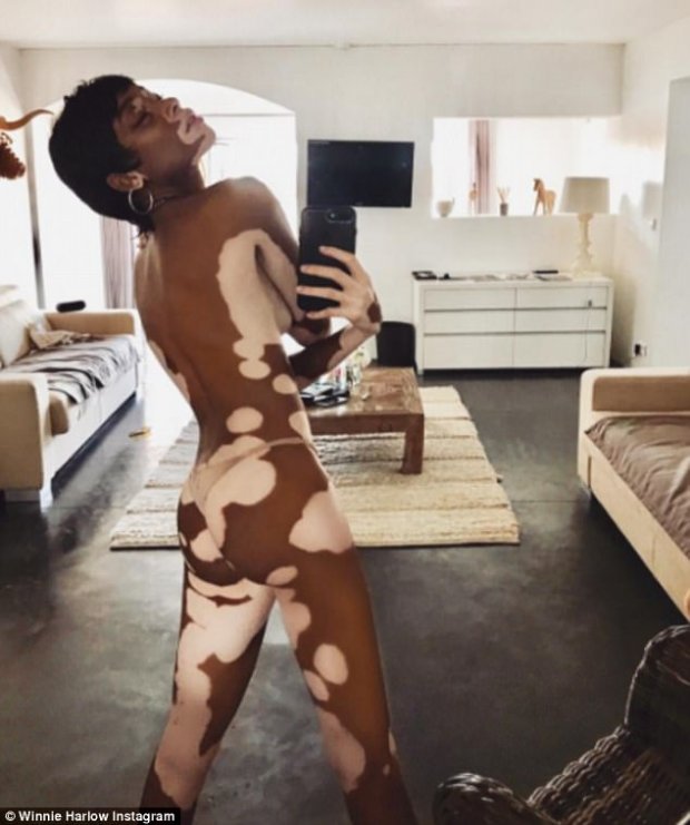 Известная «пятниста» модель Винни Харлоу, которая с детства страдает витилиго, показала свое фото топлесс. Винни не стесняется своей особенности, а наоборот, сумела превратить ее в изюминку, которая и принесла ей популярность.