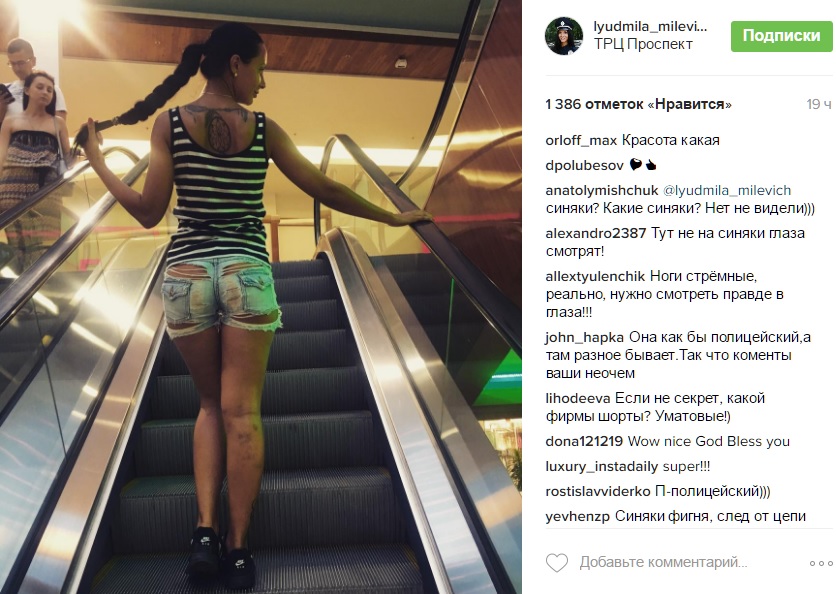 Однако позже выяснилось, что работа на таком виде транспорта не прошла бесследно для Милевич. Дело в том, что патрулирование улиц на велосипеде оставило свои следы на теле полицейской в виде синяков.