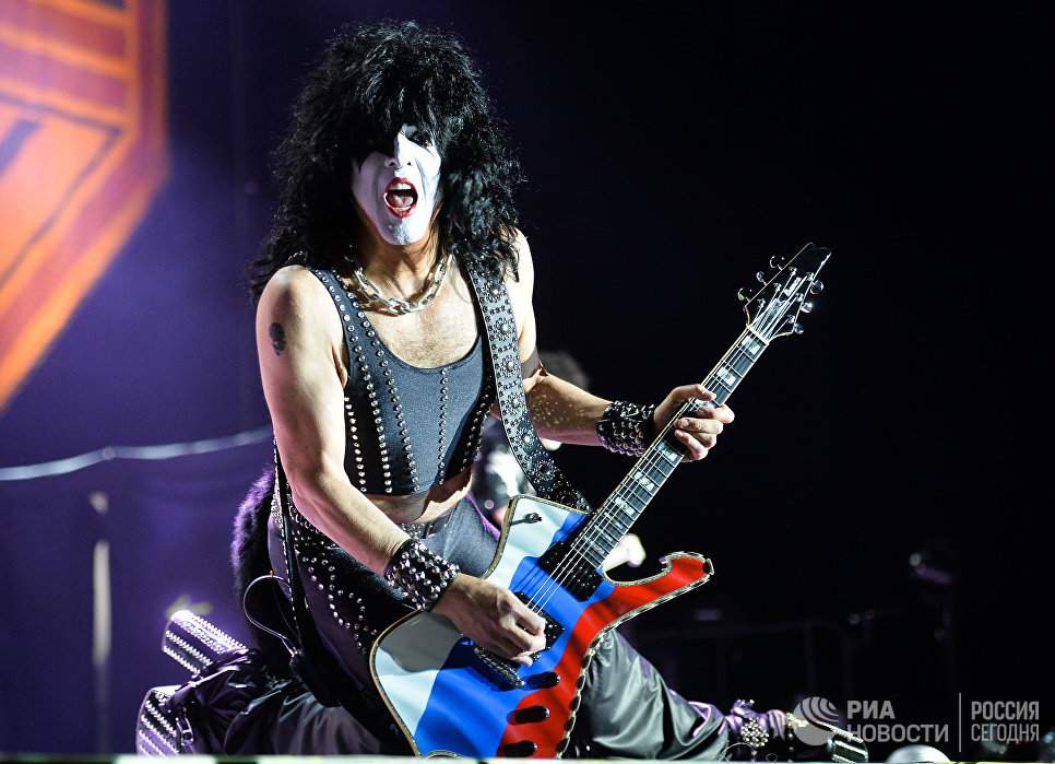 Фронтмен культовой группы Kiss Пол Стэнли дал концерт в Москве. Он вышел на сцену с гитарой, окрашенной в цвета российского флага. Об этом сообщает «РИА Новости».