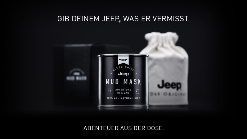 Компания выпустила лимитированную коллекцию «грязевых масок» для городских авто, которые испытывают недостаток экстремальных поездок по открытой местности. Представители Jeep заявляют, что в составе «маски» содержится то, чего очень не хватает джипу в городе «100% грязь, как выражение желания вырваться из ежедневной рутины в поиске новых приключений, подальше от проторенной дороги».