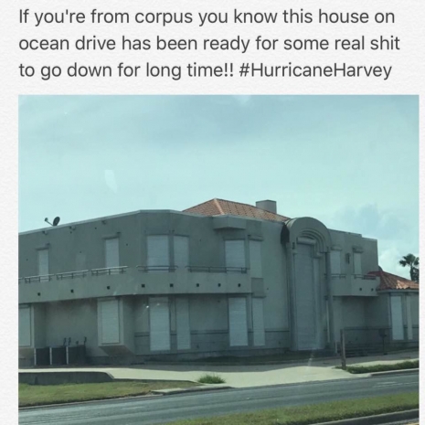 Жители города Хьюстон, который серьёзно пострадал от урагана Харви, находят остроумные способы переждать непогоду. Юмор в таком случае помогает им перетерпеть неприятности.