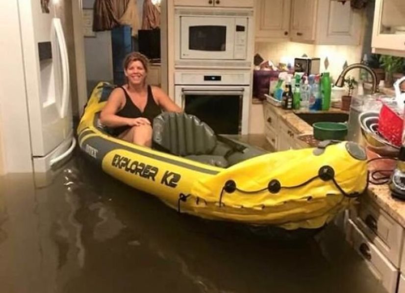 Жители города Хьюстон, который серьёзно пострадал от урагана Харви, находят остроумные способы переждать непогоду. Юмор в таком случае помогает им перетерпеть неприятности.