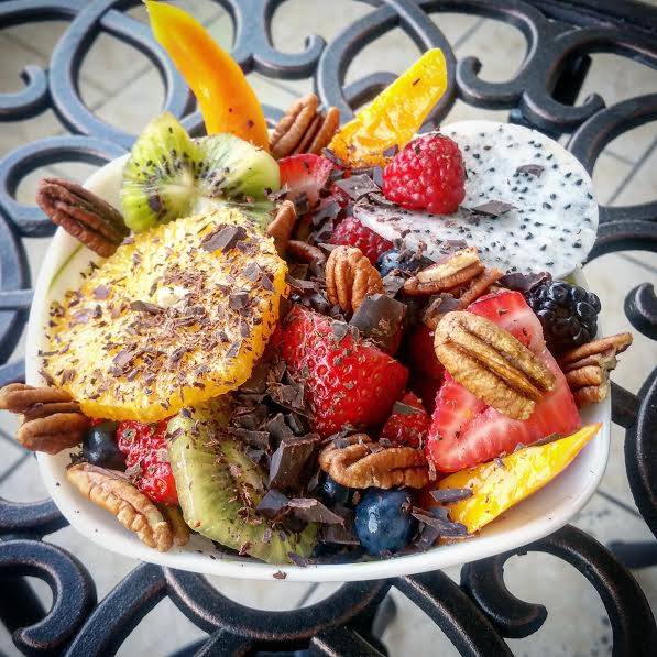 - Фрукты и ягоды — яркие, ароматные, богатые ценными витаминами и антиоксидантами, — составят основу десерта.