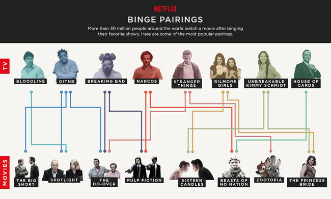 Один из крупнейших онлайн-телеканалов Netflix проанализировал поведение 86 млн. своих зрителей в течение 10 месяцев этого года, чтобы разобраться: какие фильмы обычно выбирают пользователи, досмотрев любимый сериал.