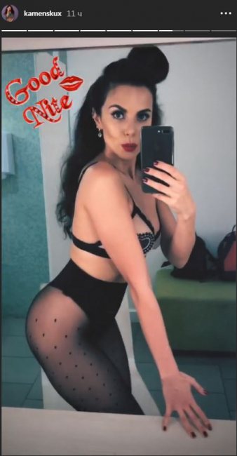 Каменских выбрала для мероприятия откровенный наряд. Звезда надела полупрозрачную черную блузку в красный и желтый «горошек», ультракороткие черные шорты, из-под который не трудно разглядеть ягодицы Каменских.
