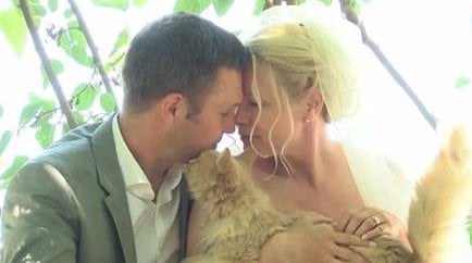 Доминик Юссон и Лузи Веронно специально для этого приехали в Калифорнию из Квебека в приют для кошек The Cat House. Они даже уговорили его основательницу Линею Латтанцио получить сан, чтобы она смогла провести религиозную церемонию.
