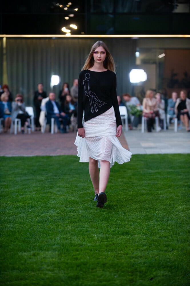 — Это мое видение трендового, но часто надуманного и иллюзорного понятия Sustainable-фэшн, — говорит Оксана Караванская. — Живем во времена, когда интровертность мира и человека в нем достигли своего пика. Но насколько этической можно считать моду в отношении к преднамеренной модификации тела человека?