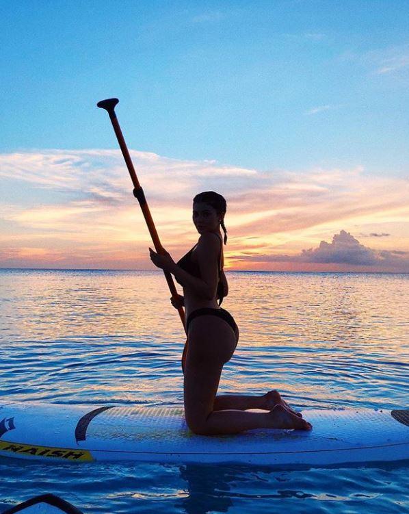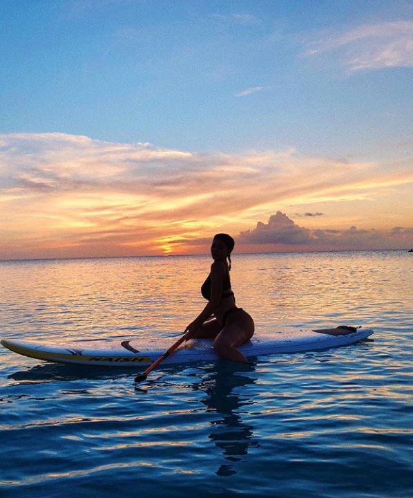 Кайли не перестает размещать пикантные снимки с отдыха. На них она запечатлена в черном бикини, выгодно подчеркивающем ее аппетитные ягодицы.