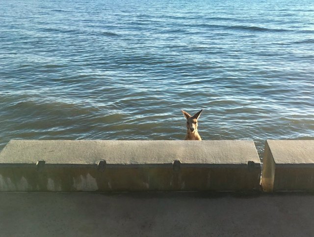 На берегу океана в Квинсленде кенгуру не смог выскочить из воды на бетонный выступ. Сумчатое выбилось из сил в попытке выйти на берег, но так и не смогло достичь желаемого результата. На помощь животному пришли пожарные. Об этом сообщает The Dodo.