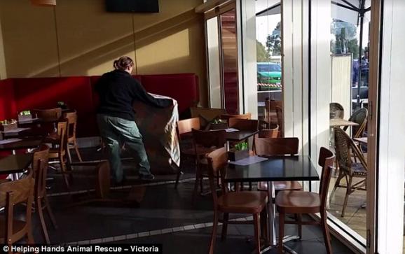 На место происшествия прибыли полицейские, а также волонтер организации Helping Hands Animal Rescue, который поймал кенгуру с помощью одеяла. Неожиданного гостя кафе назвали Голди.