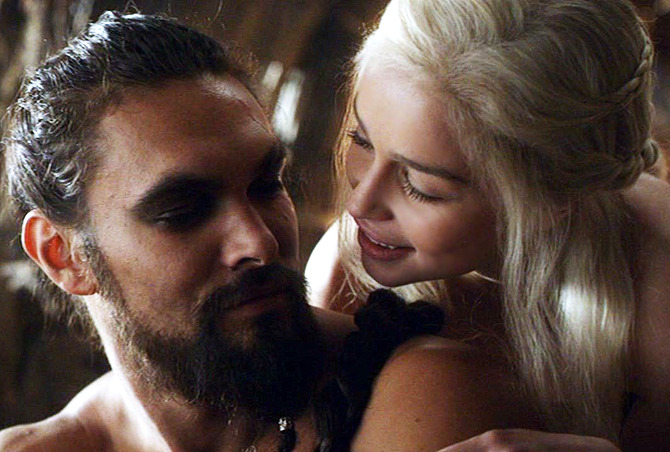 Момоа выложил в своем аккаунте два скриншота одного из эпизодов шестого сезона c субтитрами. На снимках изображена вдова его персонажа Дейенерис (Эмилия Кларк), которая говорит кхалу Моро, что не собирается рожать ему или кому бы то ни было детей.
