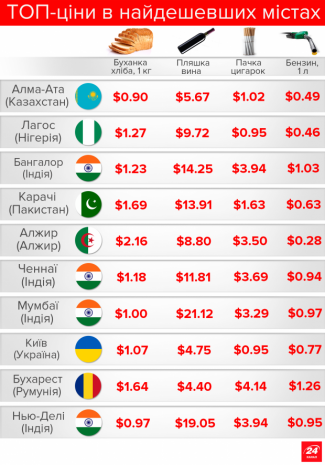 Украинская столица заняла восьмое место с конца. А наиболее дешёвым городом признали казахскую столицу Алма-Аты.
