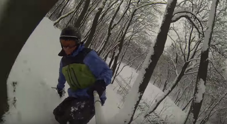 «Что для коммунальных служб беда — для бордеров и лыжников счастья. Как я бомбил склоны у Фуникулера», — написал он в аннотации.