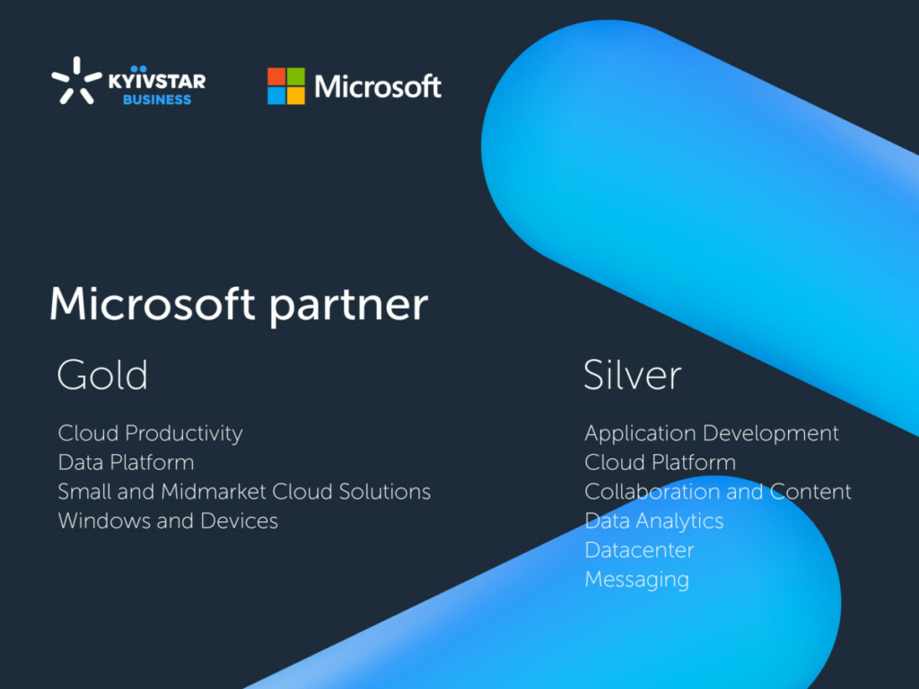 Чтобы получить статус Microsoft Gold Certified Partner специалисты по развитию и внедрению облачных сервисов компании Киевстар сдали экзамены, прошли сертификацию и подтвердили следующие компетенции: Cloud Productivity, Data Platform, Small and Midmarket Cloud Solutions, Windows and Devices. Таким образом специалисты Киевстар доказали высокий уровень знаний и экспертизы в области облачных продуктов, а значит понимают, как оптимально решить бизнес-задачи клиента с использованием технологий Microsoft.