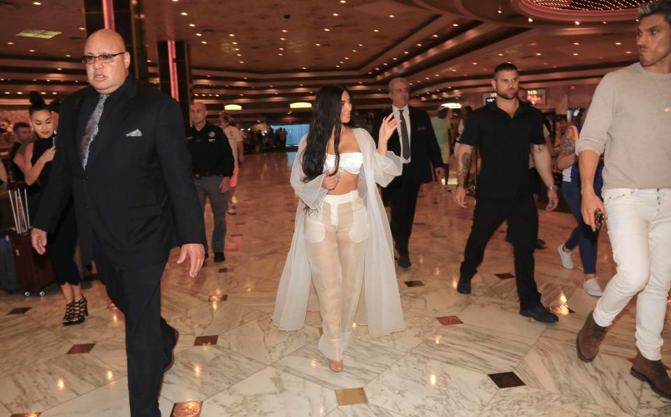 Ким Кардашьян приехала на ужин в готель MGM Grand в Лас-Вегасе в смелом провокационном наряде.