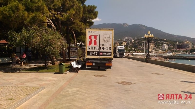 Грузовики появились на ялтинской набережной 21 июля, где совсем недавно окончились ремонтные работы.