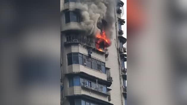 В Китае в одном из районов городского подчинения Юйчжун прохожие сняли на видео мужчину, который, спасаясь от пожара, повис на 24 этаже жилого дома, передает Channel NewsAsia.
