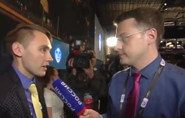 В это время журналист телеканала «Россия» поинтересовался, считает ли украинская пресса нормальным выкрикивать «политический слоган» на песенном конкурсе.