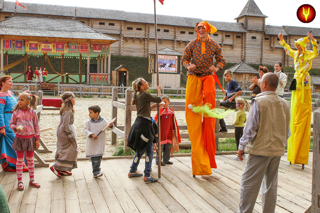 Изюминкой программы станет «смертельный» номер «Княжна из рода Феникс». Зрелищными будут выступления конного театра Древнего Киева: турнир по верховой стрельбе из лука, строевая подготовка конной дружины. А самых отчаянных гостей парка пригласят к участию в мастер-классе по джигитовке – трюкам на коне. Программу дополнят выступления жонглера, а также дрессированных служебных собак. А развеселит гостей номер забавного пони по имени Вагнер.