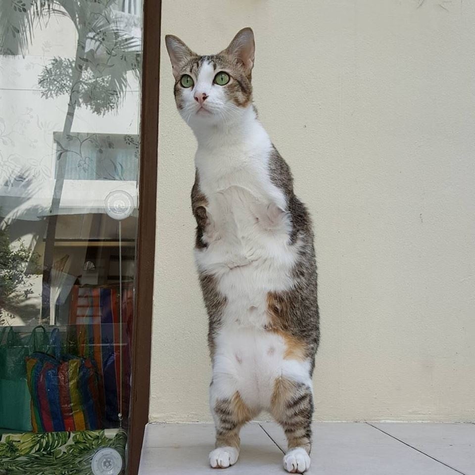Широкую популярность в социальных сетях приобрёл кот, у которого нет двух передних лап. Он живёт в Бангкоке. Животное потеряло свои лапы и хвост после удара током. Но, несмотря на такие увечья, благодаря заботливым хозяевам он продолжает жить полноценной жизнью.