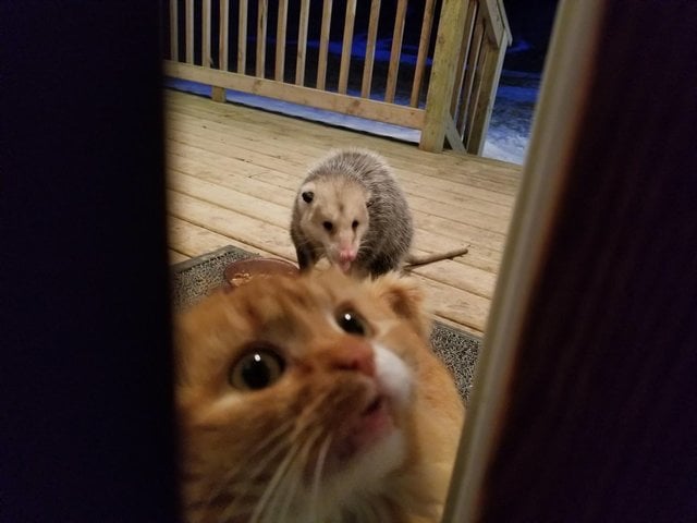 Удивлению Принцессы небыло придела, но оба животных вели себя вежливо. Родригес заметил, что Принцесса играет с юными опоссумами, ведь семья этих животных живет по соседству.