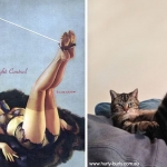 Появилась подборка иллюстраций, на которых коты принимают те же позы, что и героини эротических рисунков в стиле пин-ап. Пикантная красота женского тела в таком случае сопоставляется с забавностью кошачьего туловища. Эта серия иллюстраций была создана дизайнерами Рэйчел Аслетт и Хёрли-Бёрли.