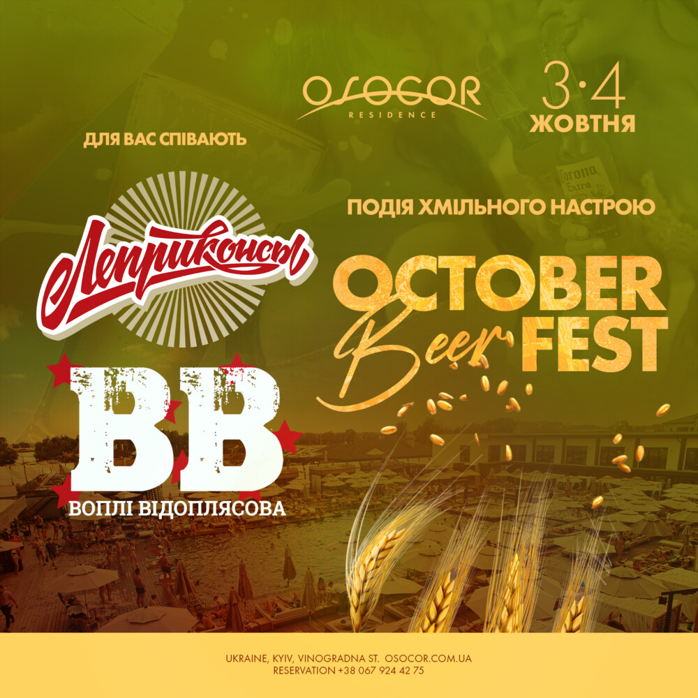 3 и 4 октября столичный Osocor Residence устроит на своих просторах знаменитые мюнхенские гуляния, которые уже более 200 лет гремят в Германии в октябре. Нет, это не будет традиционный Oktoberfest. Организаторы обещают собственный уникальный пивной праздник с украинским колоритом — October Beer Fest.