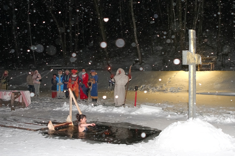 И самое главное праздничное действо: крестный ход до местного Изумрудного озера и купание в нем всех желающих. Традиционный крещенский ритуал будет не просто окунанием в воду, это будет реконструкция Крещенского обряда по всем правилам, существовавшим когда-то в Древней Руси. 19 января воды озера освятит священник. А согреться после зимнего купания можно будет в корчме вкусным травяным чаем или глинтвейном.