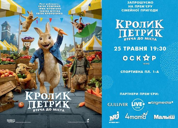 С 1 июня в кинотеатрах Украины начинается показ новой анимационной леньты «Кролик Петрик 2». Накануне, 25 мая в кинотеатре Оскар (ТРЦ Гулливер) пройдет допремьерный показ.