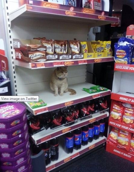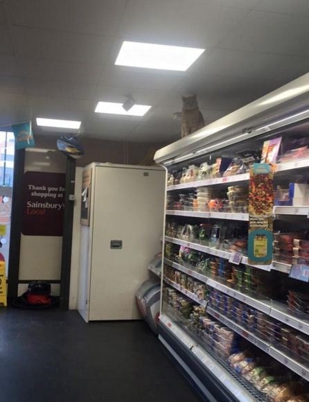 В лондонском супермаркете Sainsbury обитает наглый кот-завсегдатай, сообщает англоязычная RT.