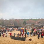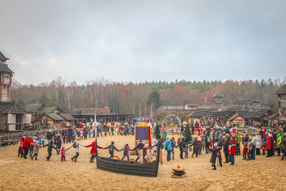 Сразу за большими въездными воротами Древнего Киева располагаются еще одни ворота – поменьше. Праздничные украшения подскажут, что именно в этом доме обосновался на все зимние праздники Дед Мороз в своей резиденции, которая признана главной в Украине. Резиденция открыта и ждет гостей не только в выходные, но и в будни. В деревянной усадьбе седобородый волшебник радушно встречает гостей, поздравляет с праздниками и конечно, дарит сладкие гостинцы за исполнение стихотворения или песенки.