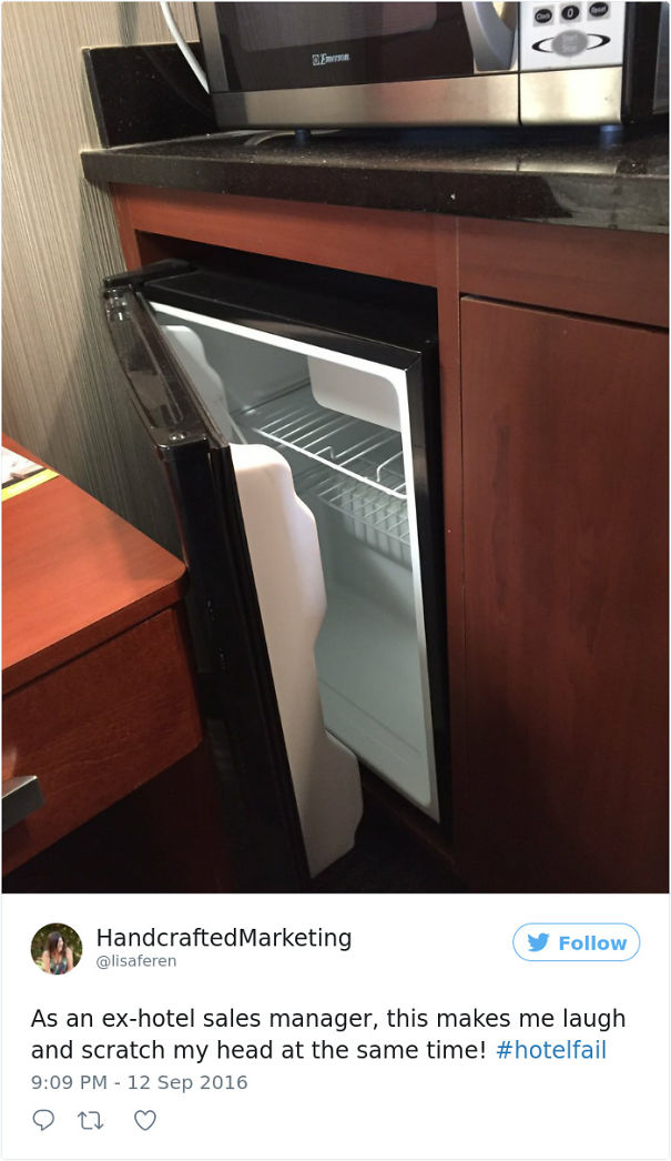 Ресурс Bored Panda составил подборку наиболее комичных случаев с обустройством отелей. В некоторых из них прозрачная стена в туалет. В других полотенце свёрнуто в форме пениса. А ещё где-то лестница ведёт прямо в глухую стену. И это не говоря о перепутанных кнопках этажей в лифте или рулонах туалетной бумаги, которые находятся в нескольких метрах от унитаза.