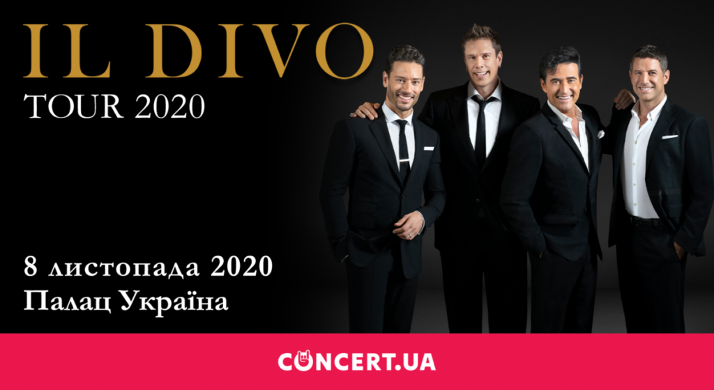 IL DIVO, уникальный интернациональный квартет, лучшие оперные голоса: испанский баритон Карлос Марин, швейцарский тенор Урс Бюлер, французский поп-певец Себастьен Изамбар и американский тенор Дэвид Миллер – выступят в киевском Дворце “Украина” 8 ноября. Скоро они отправляются в масштабное мировое турне по шести континентам — IL Divo Tour 2020. В Киеве состоится единственный концерт группы в Украине.
