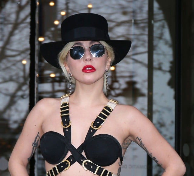 Леди Гага вновь завоевывает звание самой эпатажной знаменитости. На время прекратив эксперименты со стилем, певица все чаще стала появляться в элегантных нарядах. Например, только вчера она блистала на церемонии British Fashion Awards в сдержанном черном платье в пол, как уже сегодня фотографы словили знаменитость у лондонского отеля Лэнгхэм, облаченную в бандажный топ-бюстье, кожаную юбку от Versace, оголяющую ее ноги, и умопомрачительные ботльоны со срезанным каблуком.