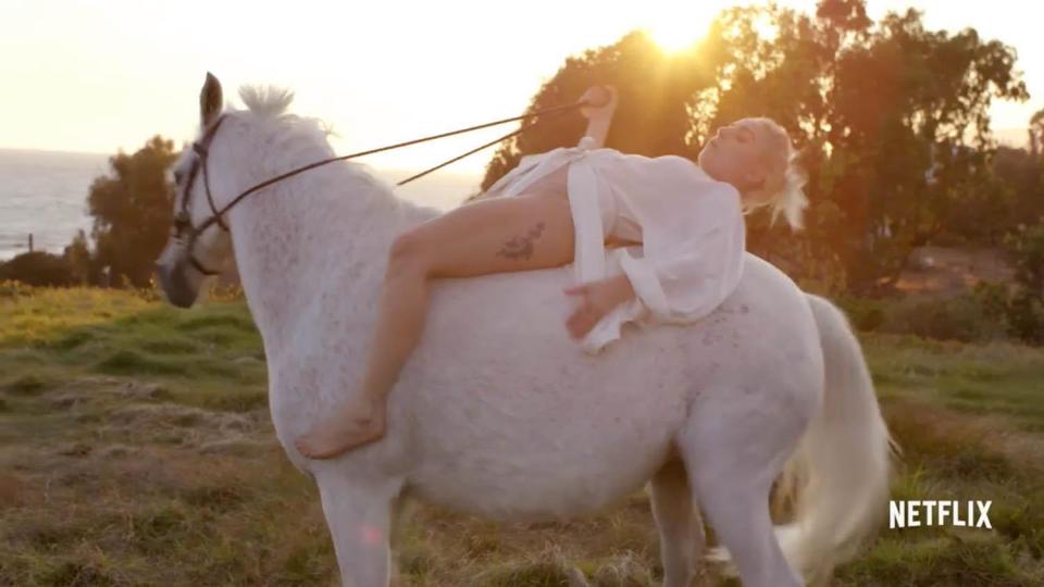 Леди Гага снялась в документальном фильме о своей жизни. На некоторых кадрах певица позирует топлесс, а также скачет на лошади без белья.